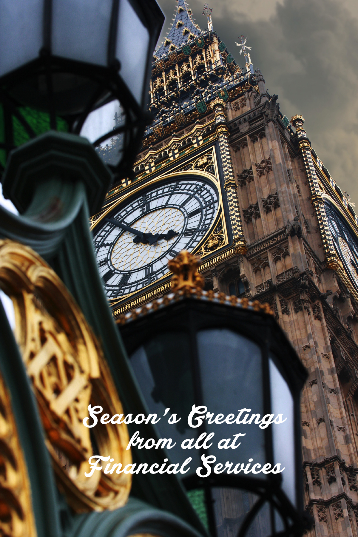 QE Tower Front Personalised London Christmas card of a London scene is printed onto a premium 300gsm solid board and finished in high-quality gloss and supplied with quality peel and seal envelopes. Personalised London Christmas cards from Hillview Designs.