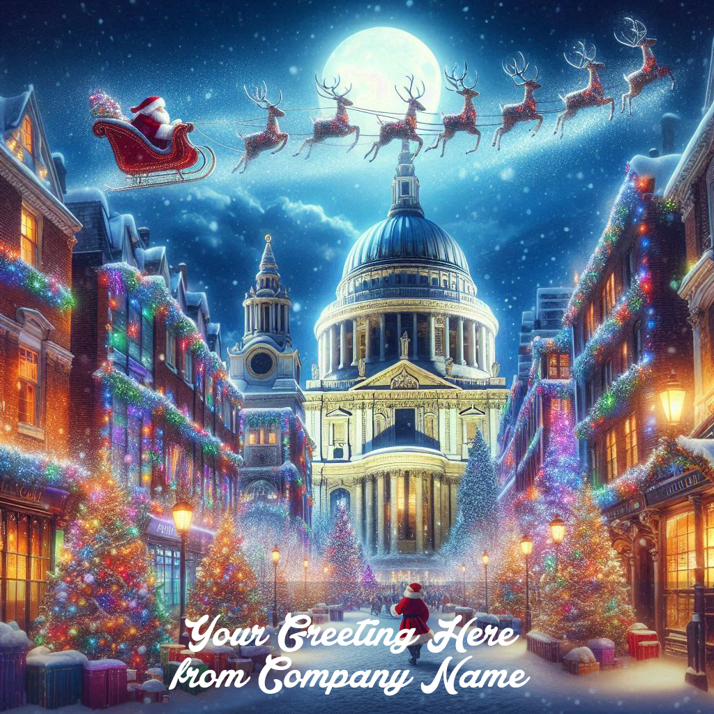 St Pauls and Santa are Gloss finished and suitable for corporate, business, company or personal use. HVPSTT22 is a perfect choice of Christmas card. OurSt Pauls and Santa Christmas cards are printed onto a premium thickness board, acquired only from sustainable sources and produced in the UK. Your inside personalisation is printed directly onto the card. This Christmas card measures 160 x 160mm.