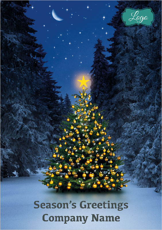 Under the Moon are Gloss finished and suitable for corporate, business, company or personal use. 625-619 is a perfect choice for small to large companies. Our Under the Moon Christmas cards are printed onto a premium thickness board, acquired only from sustainable sources and produced in the UK. Your inside personalisation is peronalised directly onto the card. Under the Moon are sized at 148x210mm. Front Personalised Chritmas Card